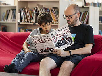 Gleichzeitig legen wir großen Wert auf analoge Medien: Der wöchentliche Besuch unserer liebevoll ausgestatteten Bibliothek lädt zum Schmökern ein. Hier wählen die Kinder jede Woche ein deutsches und ein englisches Buch aus – für Freude am Lesen und spannende Denkanstöße.